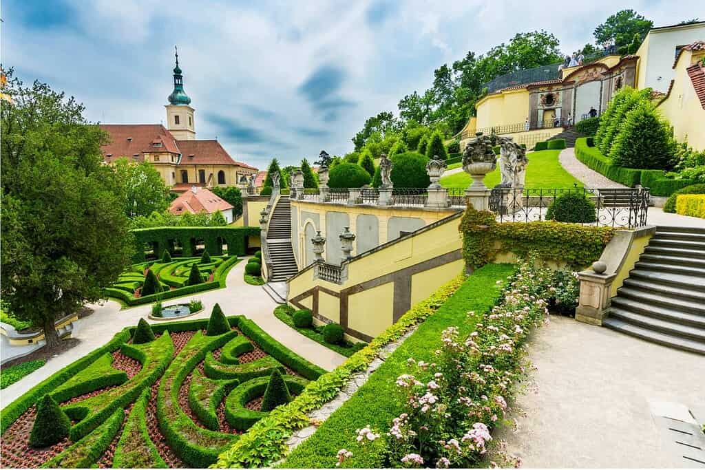 Just beyond lies the Vrtba Garden, one of Prague’s most beautiful Baroque landscapes. Created in the early eighteenth century for Count Jan Josef of Vrtba, the terraced garden climbs the sloping Petřín Hill below Prague Castle, unfolding into a series of ascending outdoor rooms adorned with sculptures, frescoes, and formal plantings.