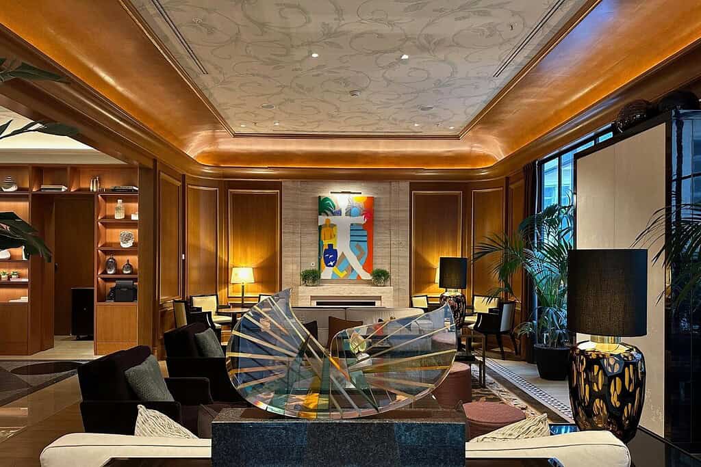 The hotel’s design intelligence lies in composition rather than grandeur. It layers antiques, modern furnishings, decorative objects, and a mix of fine and pop art in a way that feels cultivated and intentional.